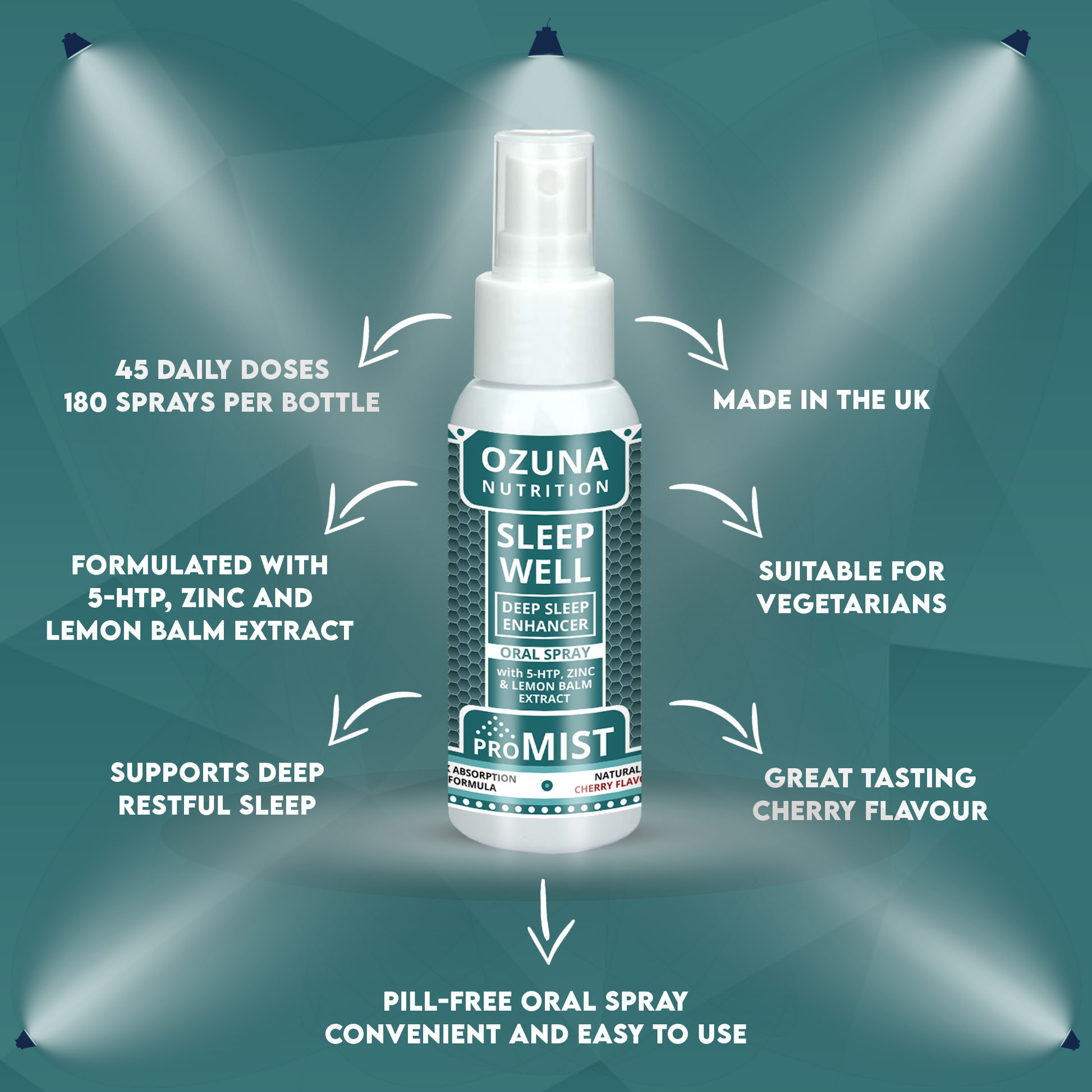 - ProMIST MICRODROPLET TECHNOLOGY: Fine mist spray for faster and more efficient absorption through the mucous membranes, bypassing the digestive system which provides a substantially higher absortion rate. Our innovative technology creates a microdroplet mist during use, allowing for rapid absorption through the mucous membranes. This means you can experience the benefits of Sleep Well quickly, efficiently and without any digestive discomfort.